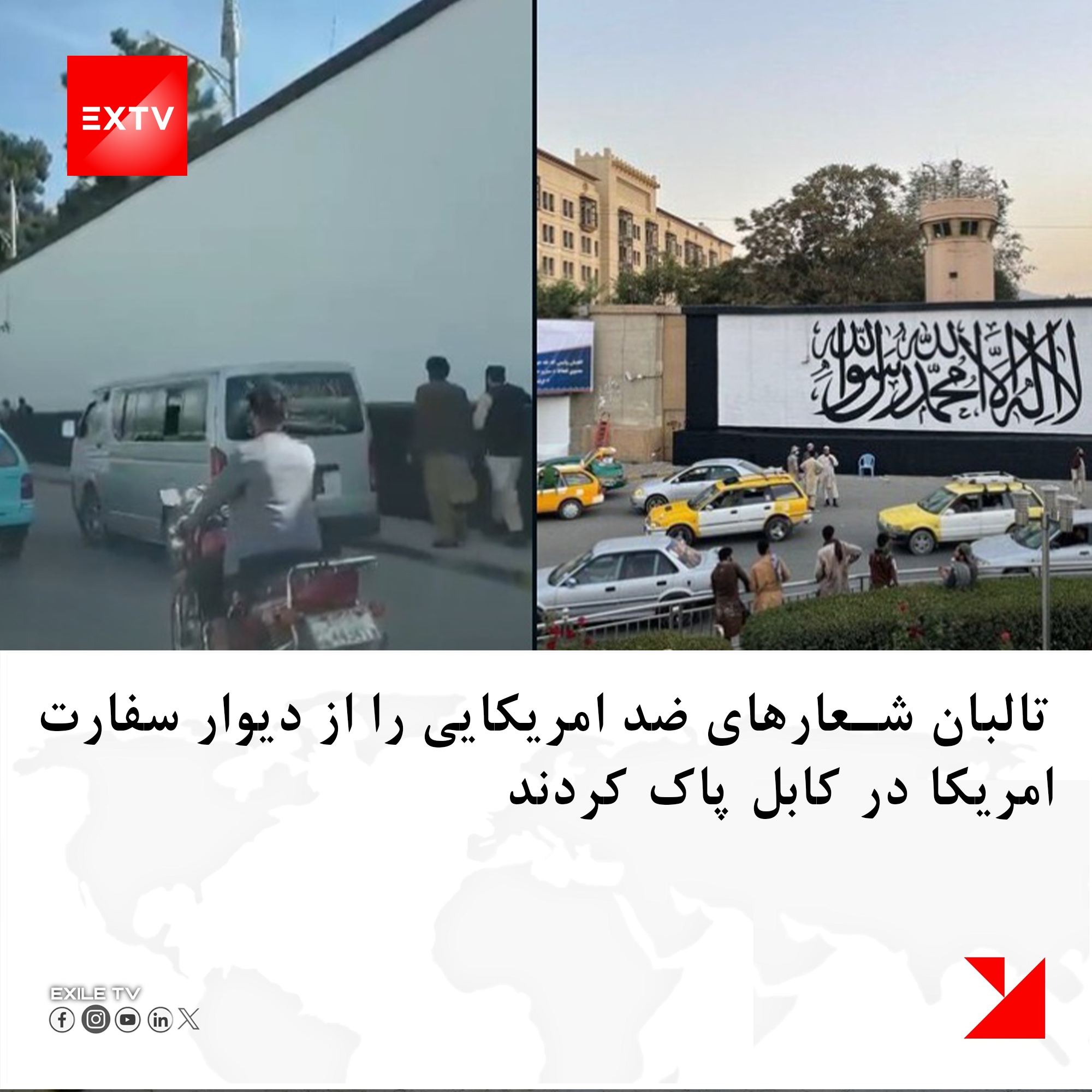 Following the US delegation's visit to Kabul, the Taliban removed anti-American slogans and the word "La ilaha illa Allah Muhammad Rasool Allah" from the walls of the US embassy.
